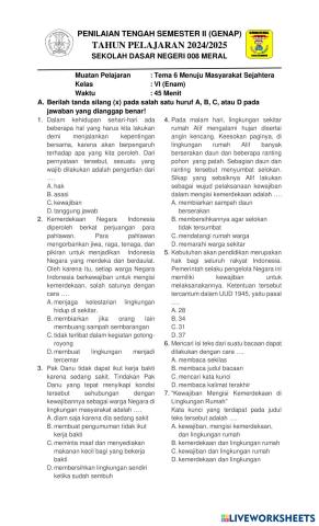 Soal PTS II Tema 7 Kls 6