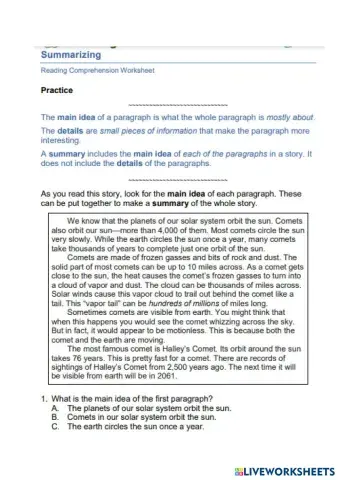 Main idea and summarzing