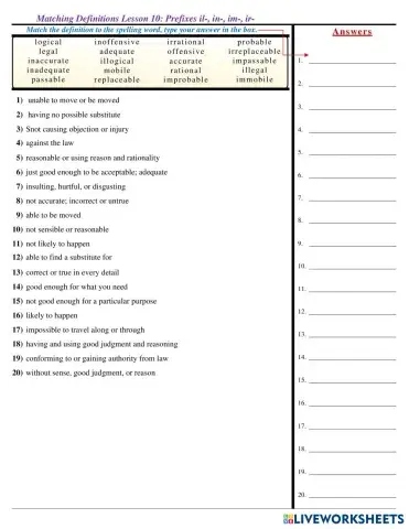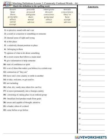 Lesson 18 - Matching Definitions