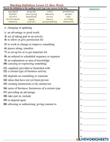 Lesson 12 - Matching Definitions
