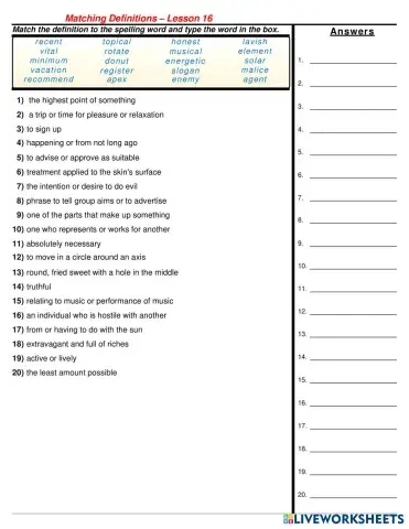 Lesson 16 - Matching Definitions