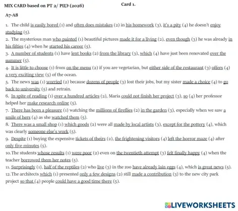 Revision Cards Missing words 2