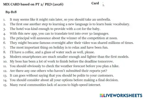 REVISION CARDS Ошибки