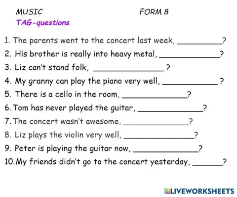 Tag questions 3 Music F8