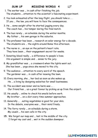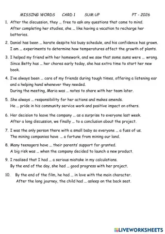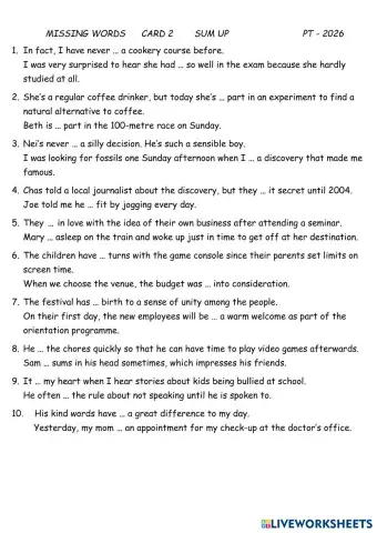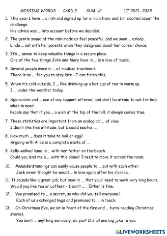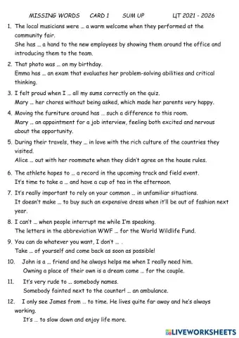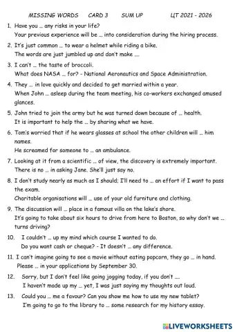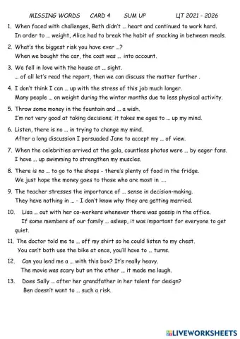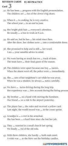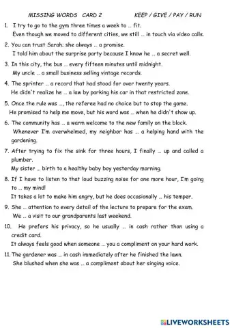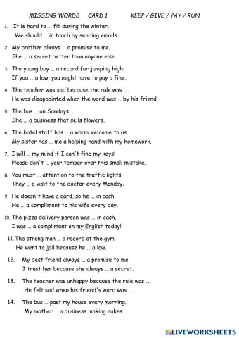 Missing words CARD 3 DO/MAKE/TAKE/PAY/KEEP