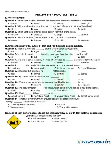 TA 9 Friends plus Review 5-6 Practice Test 1