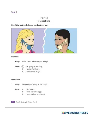 Movers Plus - Reading & Writing - Test 1 - Part 2