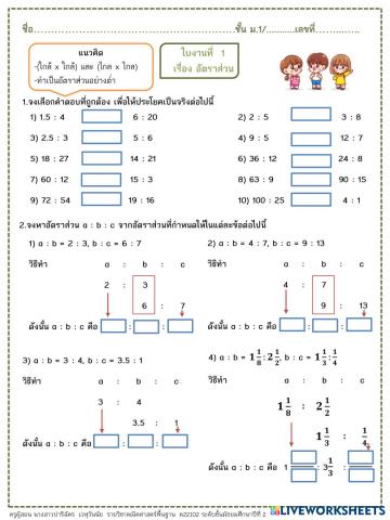 ใบงานที่ 1 อัตราส่วน ม.1 เทอม 2