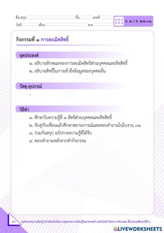 การใช้เทคโนโลยีสารสนเทศอย่างปลอดภัย ป.6
