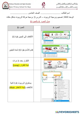 ورقة عمل تفاعلية - خوارزمية التحرك بشكل مستطيل