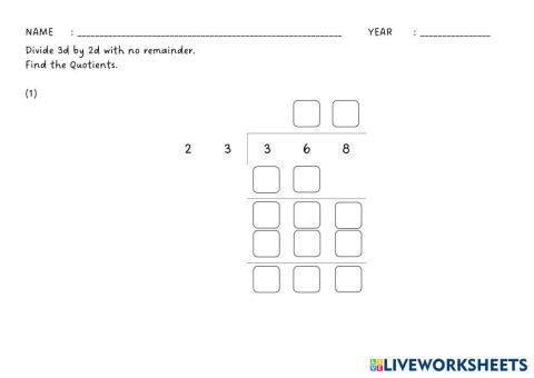 Divide 3d by 2d with & without remainder.