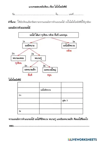 แบบทดสอบหลังเรียนไดโคโตมัสคีย์