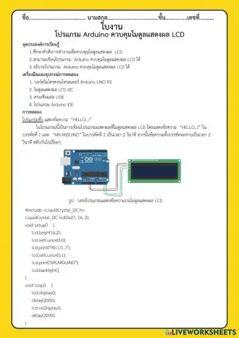 ใบงาน เรื่อง โปรแกรม Arduino ควบคุมโมดูลแสดงผล LCD