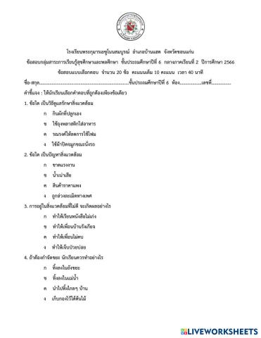 วิชาสุขศึกษาและพลศึกษา ชั้น ป.6 ปลายภาคเรียนที่1-67