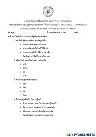 วิชาสุขศึกษาและพลศึกษา ชั้น ป.6 กลางภาคเรียนที่1-68