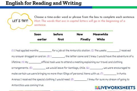 • English as a Second Language (ESL) Sequencing words in narrative writing by Teacher Muhammed Kazim Raza English Grade 6-9