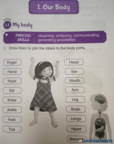 • English as a Second Language (ESL) Match body parts with the things by Teacher Kasim for P. 1 English Grade 1-2
