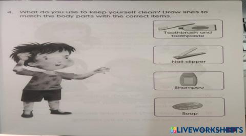 • English as a Second Language (ESL) Match the things to clean the body parts by Teacher Muhammed Kazim Raza English Grade 1-2