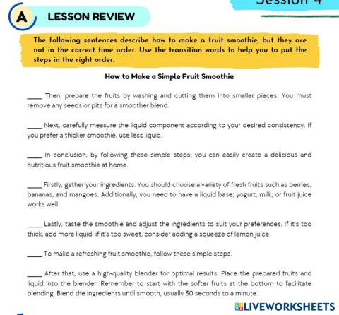 • English as a Second Language (ESL) Sequencing the order of a process baking cookies gap filling by Teacher Kasim English Grade 6-9