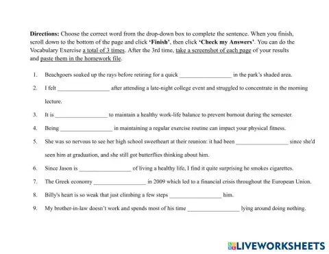 • ESL(926757) Why Some US Companies Encourage Napping on the Job-Vocabulary Exercise B(7) English Intermediate