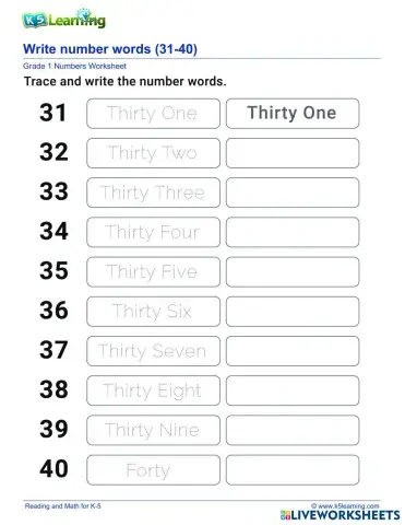 Number Names 31-40