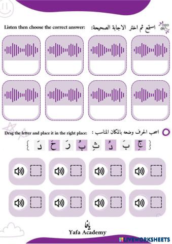 • Arabic as a second Language Alphabet letter sound (Listening quiz) 6 _ 6 (أصوات الحروف الهجائية ( اختبار استماعي English Easy