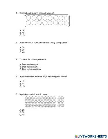 Latihan Matematik TMS Tahun 1 Cuti Sekolah Bulan 12