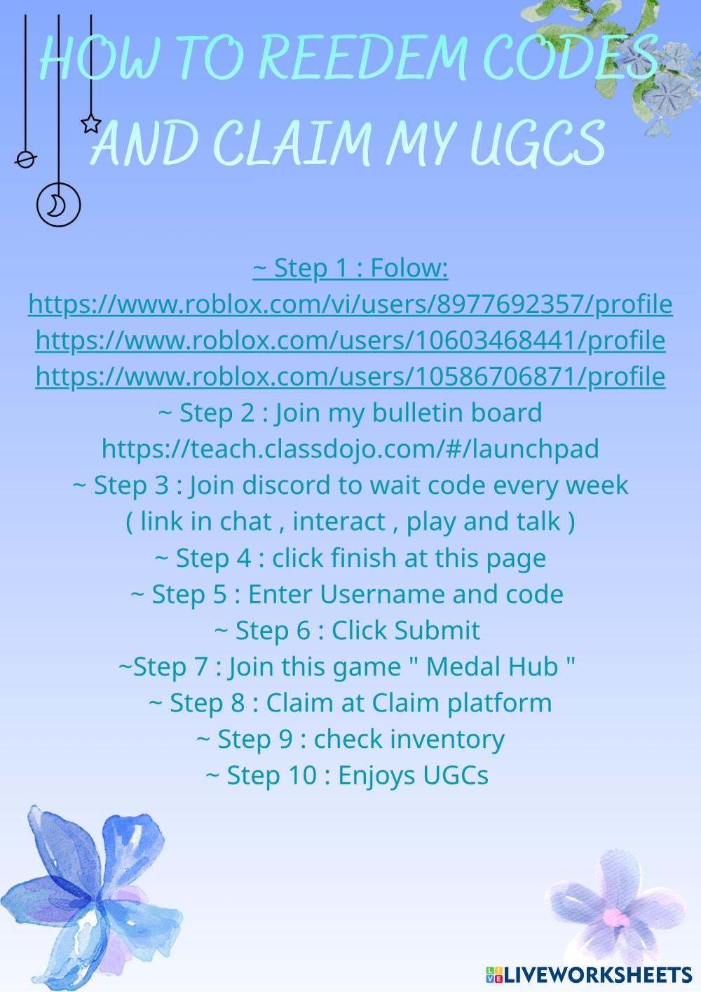 HOW TO REEDEM CODES AND CLAIM MY UGCS