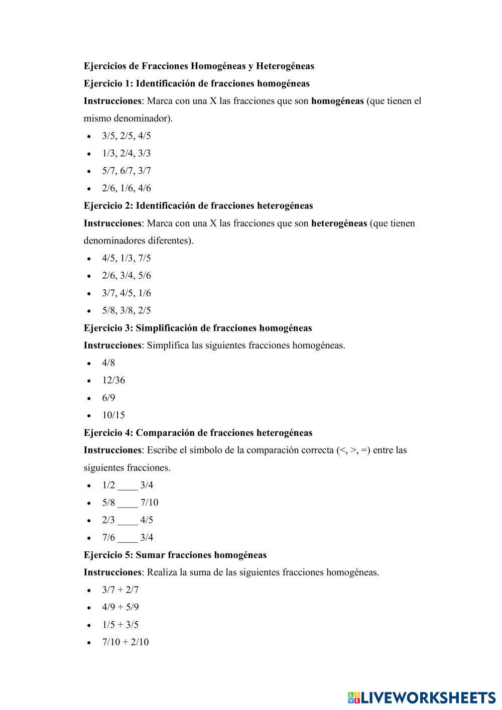- Identifica si las fracciones son homogéneas o heterogéneas.