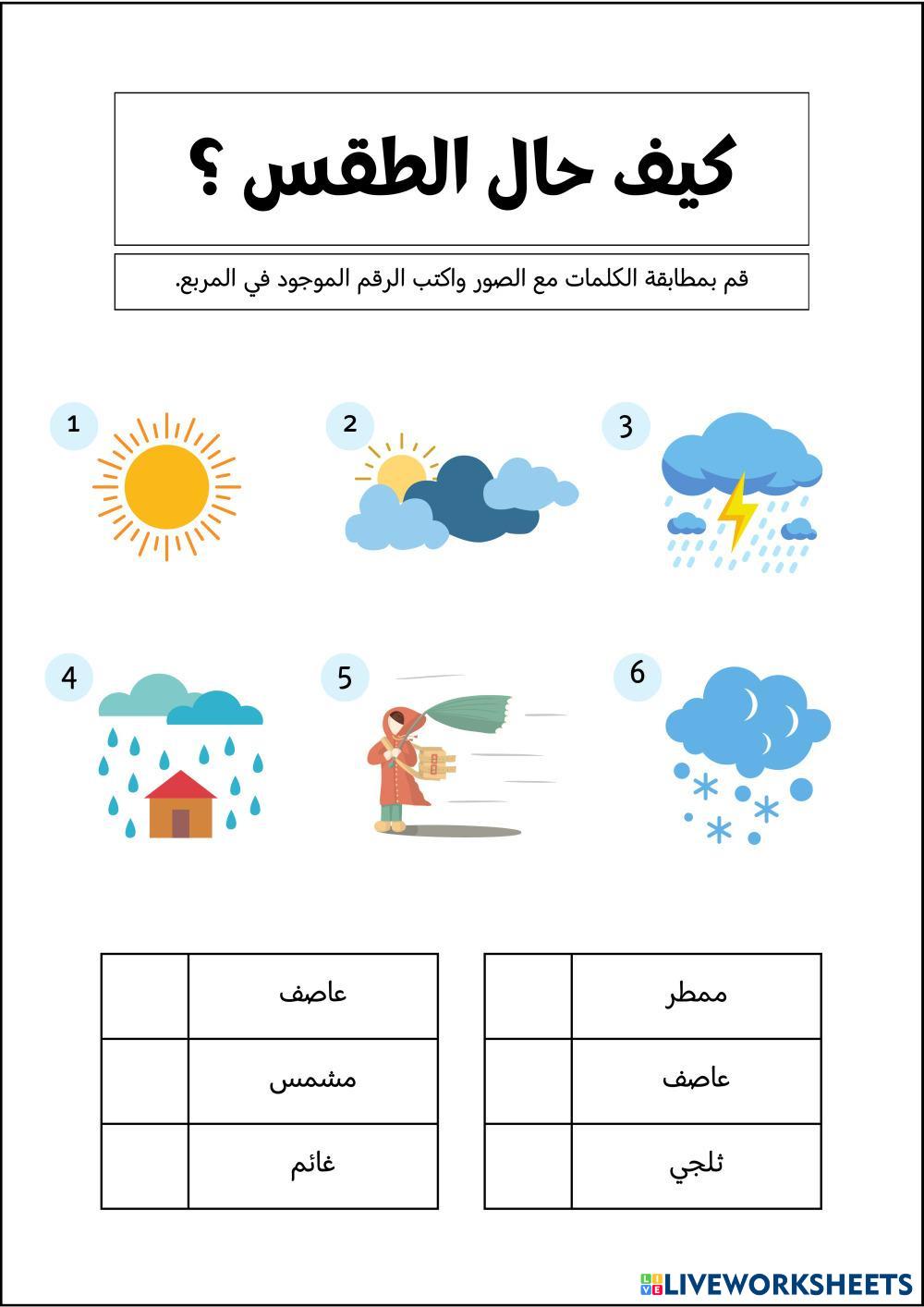 Created byMaram Altamimi ًWeather الطقس فصول السنه Age 4-9 level: 1 Arabic Author's Instructions My Google Classroom Courses × 0 classes selected (0 students total) Quick Access Select all classes (0 classes) All Classes Loading courses... Cancel Share Share to selected Course __COURSE_NAME__ __STUDENT_NAME__ (__STUDENT_EMAIL__) ورقة عمل الطقس Download Worksheet Validation Check my answers Emails my answers to my teacher Full name Group/level School subject Teacher's email or key code Close Submit Validating worksheet... (12) Your answers have been sent to your teacher. Good luck! OK We encountered an error submitting your answers. Please try again. OK Advertisement | Go Ad Free Created byMaram Altamimi ًWeather الطقس فصول السنه Age 4-9 level: 1 Arabic Author's Instructions
