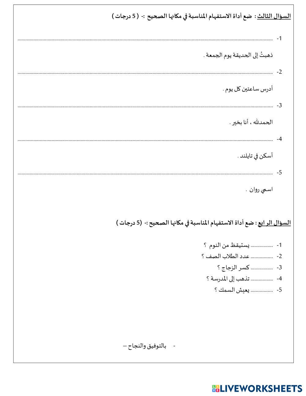 Created byAishah kama Arabic Grammar النحو Age 18+ level: 12 Arabic Author's Instructions My Google Classroom Courses × 0 classes selected (0 students total) Quick Access Select all classes (0 classes) All Classes Loading courses... Cancel Share Share to selected Course __COURSE_NAME__ __STUDENT_NAME__ (__STUDENT_EMAIL__) 3 اختبار أعمال السنة النحو Download Worksheet Validation Check my answers Emails my answers to my teacher Full name Group/level School subject Teacher's email or key code Close Submit Validating worksheet... (12) Your answers have been sent to your teacher. Good luck! OK We encountered an error submitting your answers. Please try again. OK Advertisement | Go Ad Free Created byAishah kama Arabic Grammar النحو Age 18+ level: 12 Arabic Author's Instructions