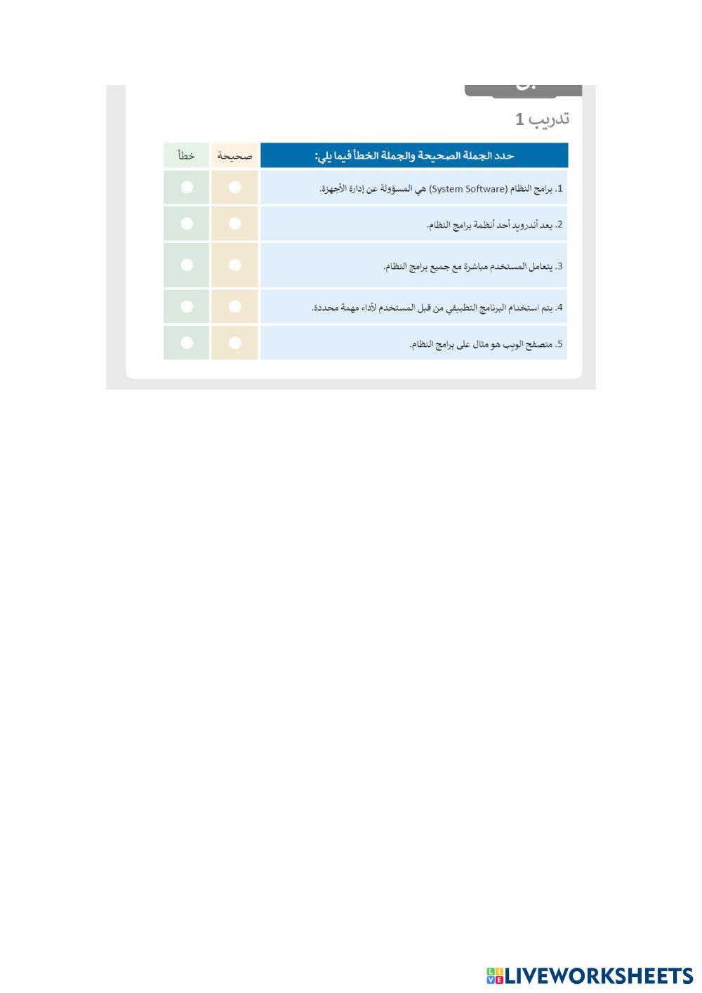 Created byAbeer computer science computer Age 17+ level: Grade 12 Arabic Author's Instructions My Google Classroom Courses × 0 classes selected (0 students total) Quick Access Select all classes (0 classes) All Classes Loading courses... Cancel Share Share to selected Course __COURSE_NAME__ __STUDENT_NAME__ (__STUDENT_EMAIL__) ورقة عمل 1 Download Worksheet Validation Check my answers Emails my answers to my teacher Full name Group/level School subject Teacher's email or key code Close Submit Validating worksheet... (12) Your answers have been sent to your teacher. Good luck! OK We encountered an error submitting your answers. Please try again. OK Advertisement | Go Ad Free Created byAbeer computer science computer Age 17+ level: Grade 12 Arabic Author's Instructions