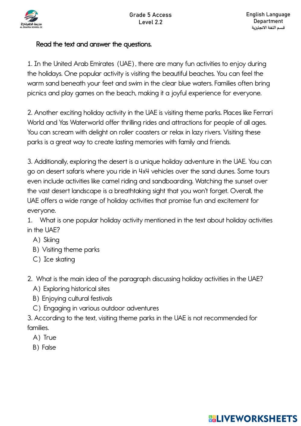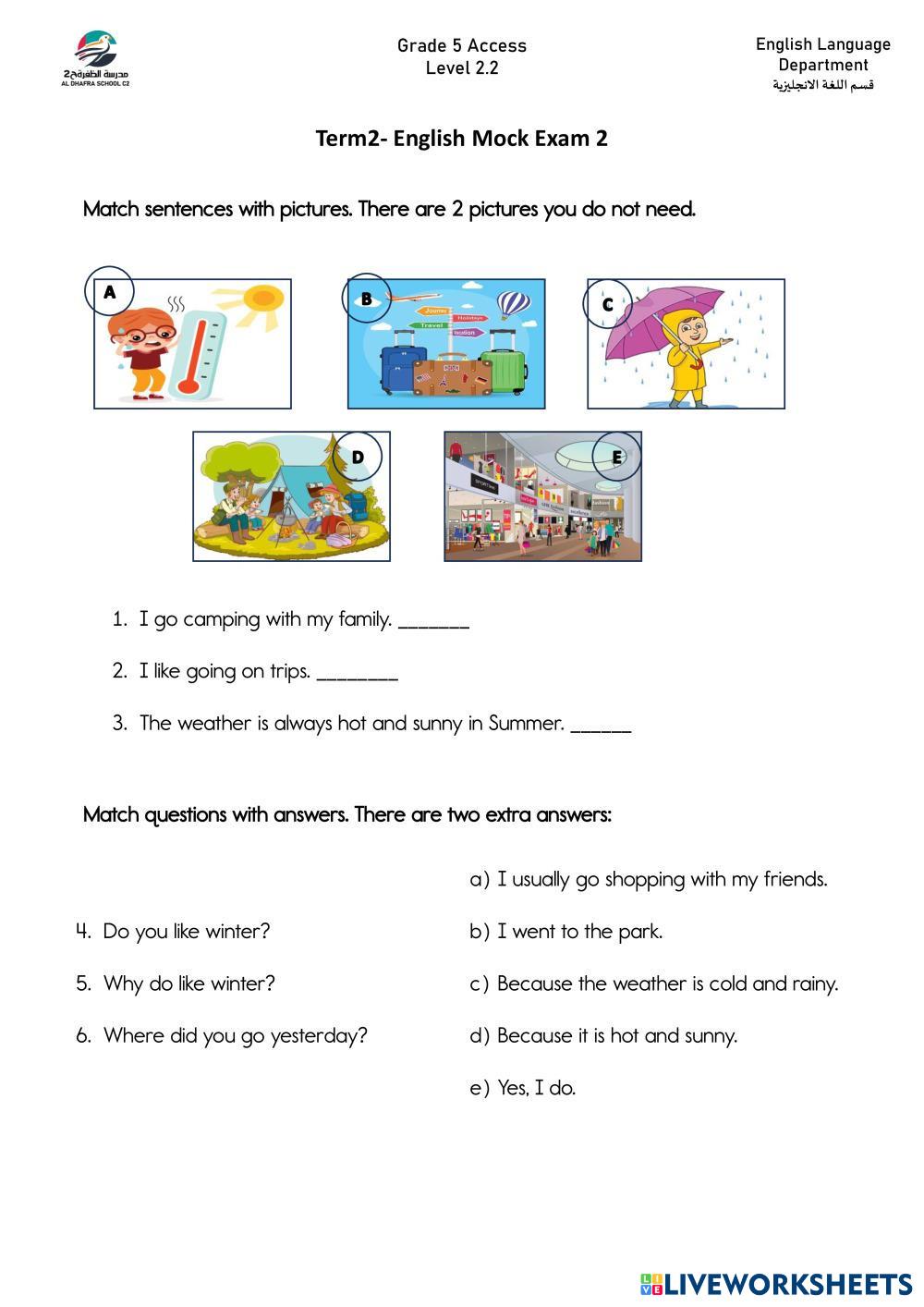 Created by hokage English as a Second Language (ESL) Exam Prep Age 6-14 level: Level A Arabic Author's Instructions My Google Classroom Courses × 0 classes selected (0 students total) Quick Access Select all classes (0 classes) All Classes Loading courses... Cancel Share Share to selected Course __COURSE_NAME__ __STUDENT_NAME__ (__STUDENT_EMAIL__) Term 2 Mock Exam2 Download Worksheet Validation Check my answers Emails my answers to my teacher Full name Group/level School subject Teacher's email or key code Close Submit Validating worksheet... (12) Your answers have been sent to your teacher. Good luck! OK We encountered an error submitting your answers. Please try again. OK Advertisement | Go Ad Free Created by hokage English as a Second Language (ESL) Exam Prep Age 6-14 level: Level A Arabic Author's Instructions