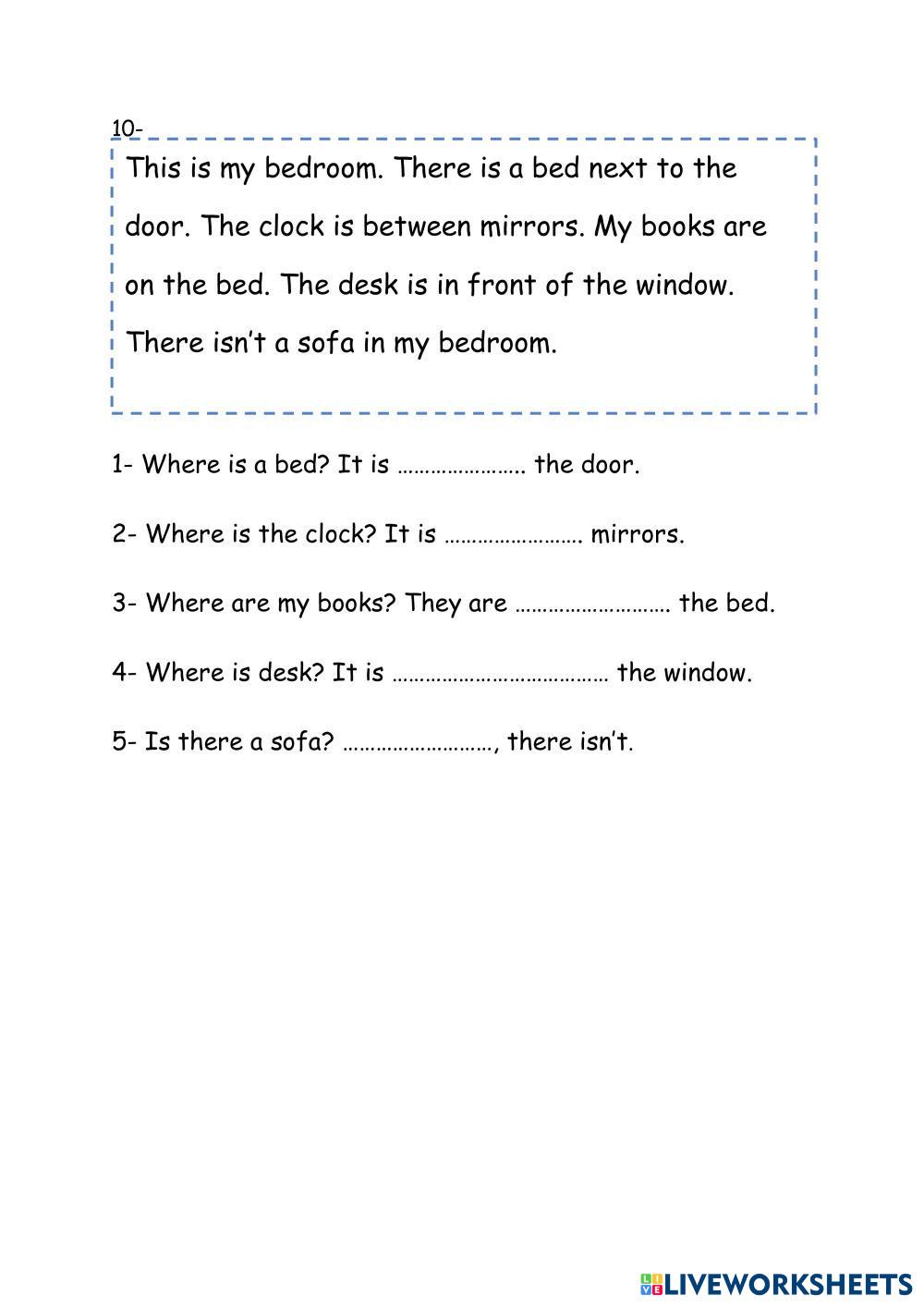 Created byMaryam english reading comprehension Age 9-15 level: 3 Arabic Author's Instructions My Google Classroom Courses × 0 classes selected (0 students total) Quick Access Select all classes (0 classes) All Classes Loading courses... Cancel Share Share to selected Course __COURSE_NAME__ __STUDENT_NAME__ (__STUDENT_EMAIL__) reading comprehension 10 Download Worksheet Validation Check my answers Emails my answers to my teacher Full name Group/level School subject Teacher's email or key code Close Submit Validating worksheet... (12) Your answers have been sent to your teacher. Good luck! OK We encountered an error submitting your answers. Please try again. OK Advertisement | Go Ad Free Created byMaryam english reading comprehension Age 9-15 level: 3 Arabic Author's Instructions