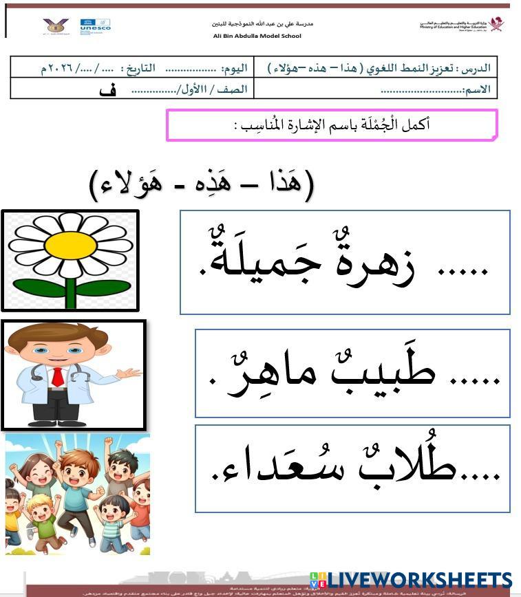Created by 13116 ESL Arabic A1 Writing Arabic Author's Instructions حل و ابعث على الشات My Google Classroom Courses × 0 classes selected (0 students total) Quick Access Select all classes (0 classes) All Classes Loading courses... Cancel Share Share to selected Course __COURSE_NAME__ __STUDENT_NAME__ (__STUDENT_EMAIL__) حل ورقة العمل Download Worksheet Validation Check my answers Emails my answers to my teacher Full name Group/level School subject Teacher's email or key code Close Submit Validating worksheet... (12) Your answers have been sent to your teacher. Good luck! OK We encountered an error submitting your answers. Please try again. OK Advertisement | Go Ad Free Created by 13116 ESL Arabic A1 Writing Arabic Author's Instructions حل و ابعث على الشات Explore Worksheets صور حرف النون ESL A1 صور حرف النون Writing - ESL اختر صور حرف النون تعبير كتابي ESL A1 تعبير كتابي Writing - ESL للصف الثاني الابتدائي حل ورقة العمل ESL A1 حل ورقة العمل Writing - ESL chat ارسل على تعزيز نبينا محمد ESL A1 تعزيز نبينا محمد Writing - ESL تصنيف أعمال الخير الذي أرشدنا اليها سيدنا محمد