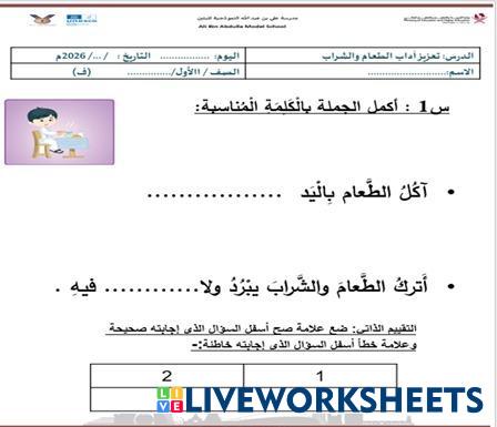 Created by 13116 ESL Arabic A1 Writing Arabic Author's Instructions حل وابعث على الشات My Google Classroom Courses × 0 classes selected (0 students total) Quick Access Select all classes (0 classes) All Classes Loading courses... Cancel Share Share to selected Course __COURSE_NAME__ __STUDENT_NAME__ (__STUDENT_EMAIL__) حل ورقة العمل Download Worksheet Validation Check my answers Emails my answers to my teacher Full name Group/level School subject Teacher's email or key code Close Submit Validating worksheet... (12) Your answers have been sent to your teacher. Good luck! OK We encountered an error submitting your answers. Please try again. OK Advertisement | Go Ad Free Created by 13116 ESL Arabic A1 Writing Arabic Author's Instructions حل وابعث على الشات Explore Worksheets الأسماء الموصولة ESL A1 الأسماء الموصولة Writing - ESL للصف الثاني ورقة عمل التركيب للمستويات ESL A1 ورقة عمل التركيب للمستويات Writing - ESL ركب المقاطع التالية : حل ورقة العمل ESL A1 حل ورقة العمل Writing - ESL حل وارسل على الشات حل ورقة العمل ESL A1 حل ورقة العمل Writing - ESL حل وارسل على الشات