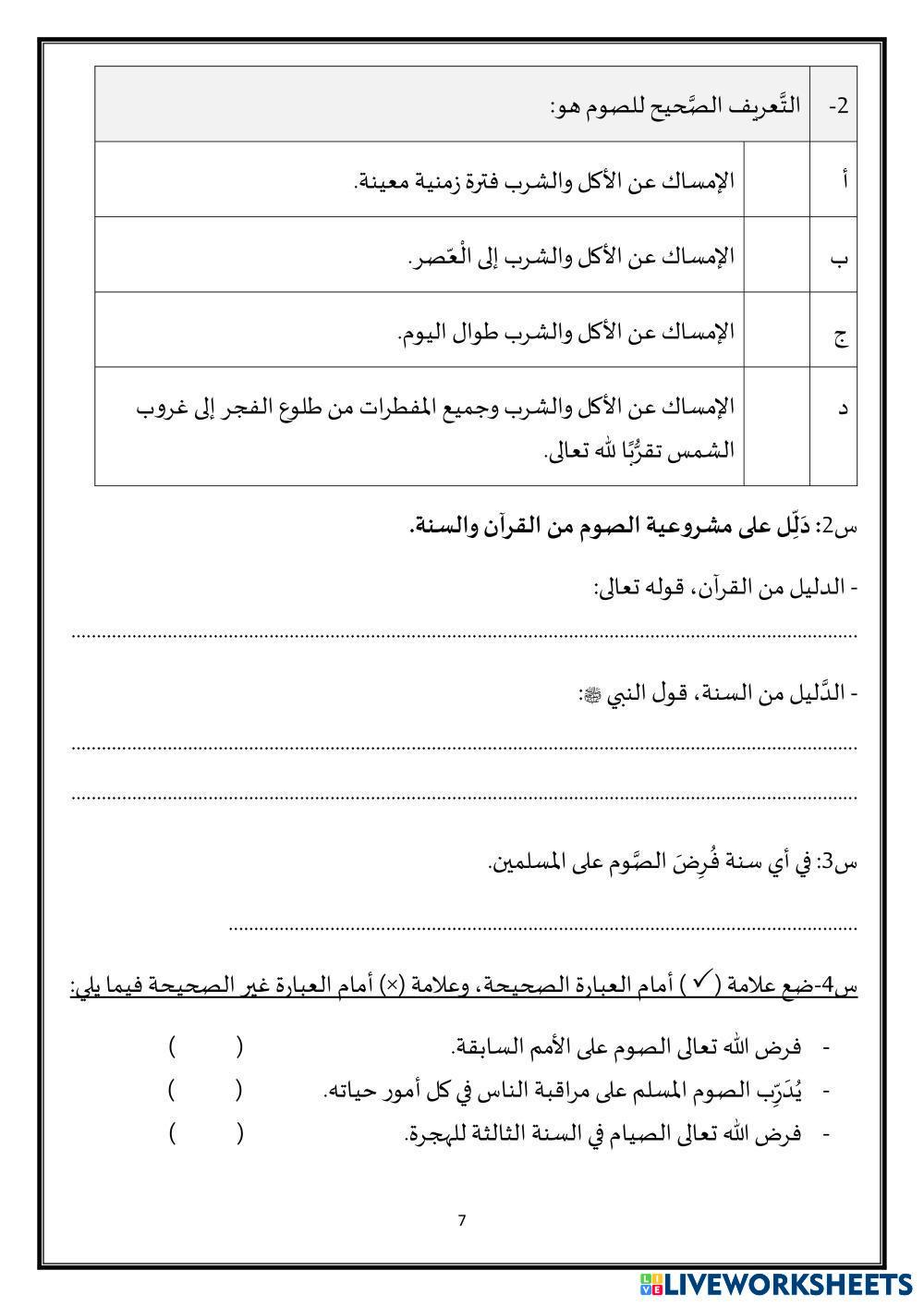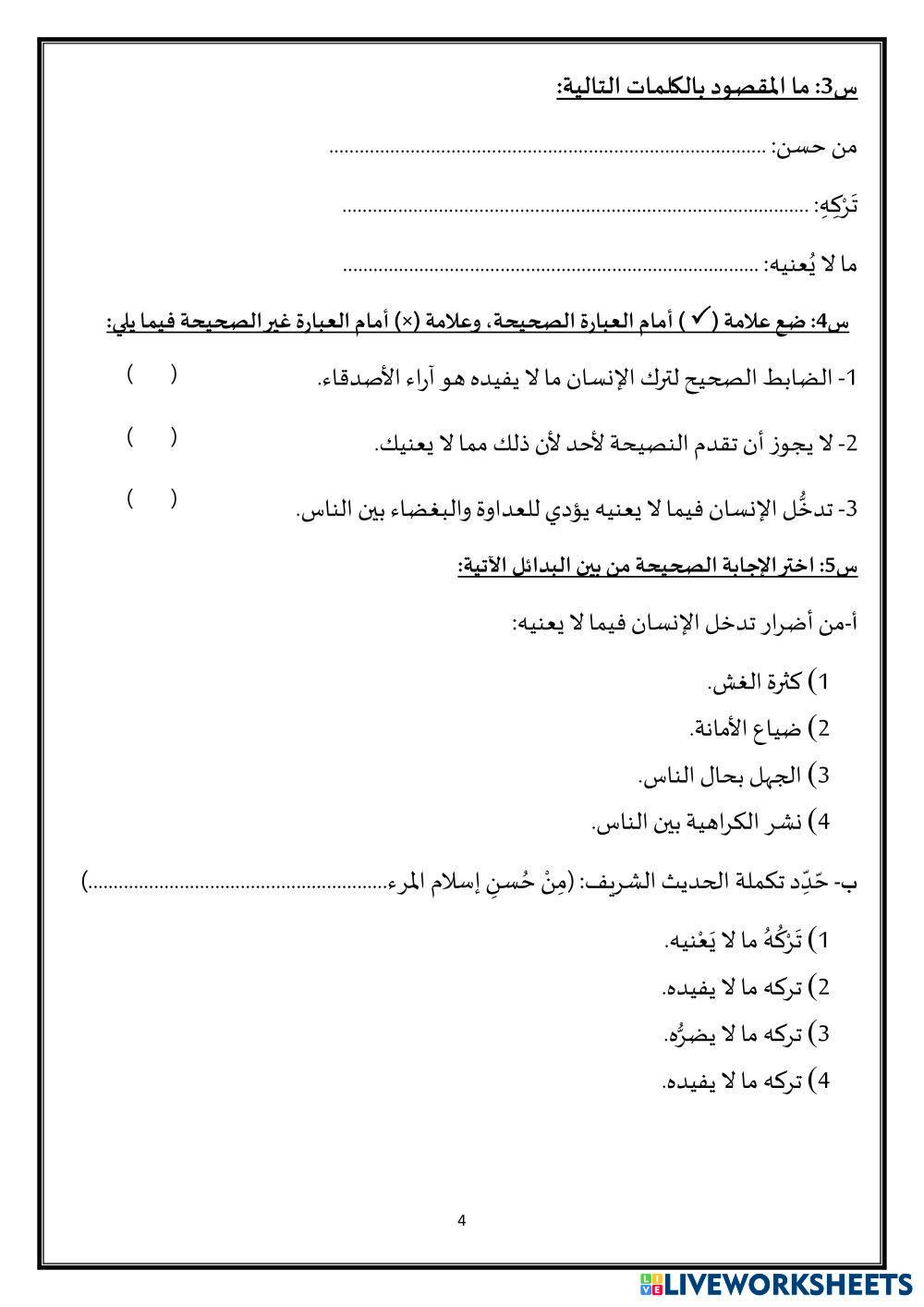 Created by sarahghoneim ESL Arabic A2 Writing Arabic Author's Instructions مراجعة منتصف الفصل الدراسي الثاني My Google Classroom Courses × 0 classes selected (0 students total) Quick Access Select all classes (0 classes) All Classes Loading courses... Cancel Share Share to selected Course __COURSE_NAME__ __STUDENT_NAME__ (__STUDENT_EMAIL__) مراجعة خامس وسادس Download Worksheet Validation Check my answers Emails my answers to my teacher Full name Group/level School subject Teacher's email or key code Close Submit Validating worksheet... (12) Your answers have been sent to your teacher. Good luck! OK We encountered an error submitting your answers. Please try again. OK Advertisement | Go Ad Free Created by sarahghoneim ESL Arabic A2 Writing Arabic Author's Instructions مراجعة منتصف الفصل الدراسي الثاني Explore Worksheets الاختبار التشخيصي للغة العربية المستوى الثاني ESL A2 الاختبار التشخيصي للغة العربية المستوى الثاني Writing - ESL يرجى حل الاسئلة التالية الإنتاج الكتابي ESL A2 الإنتاج الكتابي Writing - ESL عزيزتي الطالبة اقرئي السؤال جيدًا ثم أجيبي عنه الرفق بالحيوان ESL A2 الرفق بالحيوان Writing - ESL اكمل الفراغات سورة النبأ ESL A2 سورة النبأ Writing - ESL .