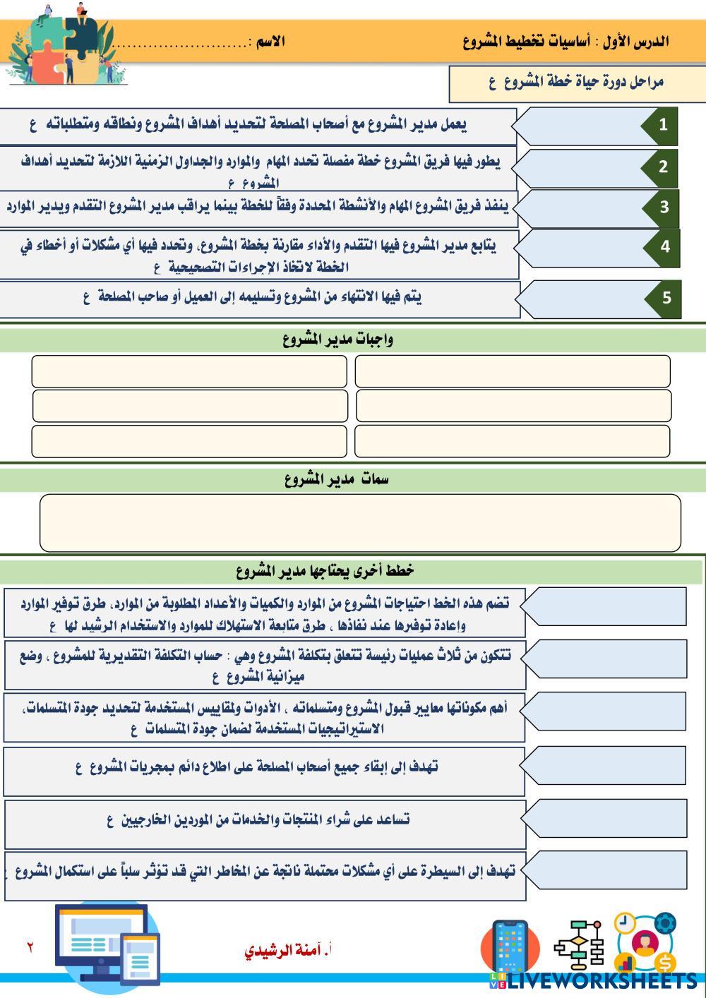 ورقة عمل الدرس الأول من الوحدة الاولى مقرر تقنية رقمية 3