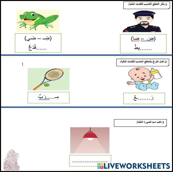 Created byheba mohamed حرف الضاد1 حرف الضاد1 Age 7-10 level: 1 Arabic Author's Instructions My Google Classroom Courses × 0 classes selected (0 students total) Quick Access Select all classes (0 classes) All Classes Loading courses... Cancel Share Share to selected Course __COURSE_NAME__ __STUDENT_NAME__ (__STUDENT_EMAIL__) ورقة عمل حرف الضاد Download Worksheet Validation Check my answers Emails my answers to my teacher Full name Group/level School subject Teacher's email or key code Close Submit Validating worksheet... (12) Your answers have been sent to your teacher. Good luck! OK We encountered an error submitting your answers. Please try again. OK Advertisement | Go Ad Free Created byheba mohamed حرف الضاد1 حرف الضاد1 Age 7-10 level: 1 Arabic Author's Instructions