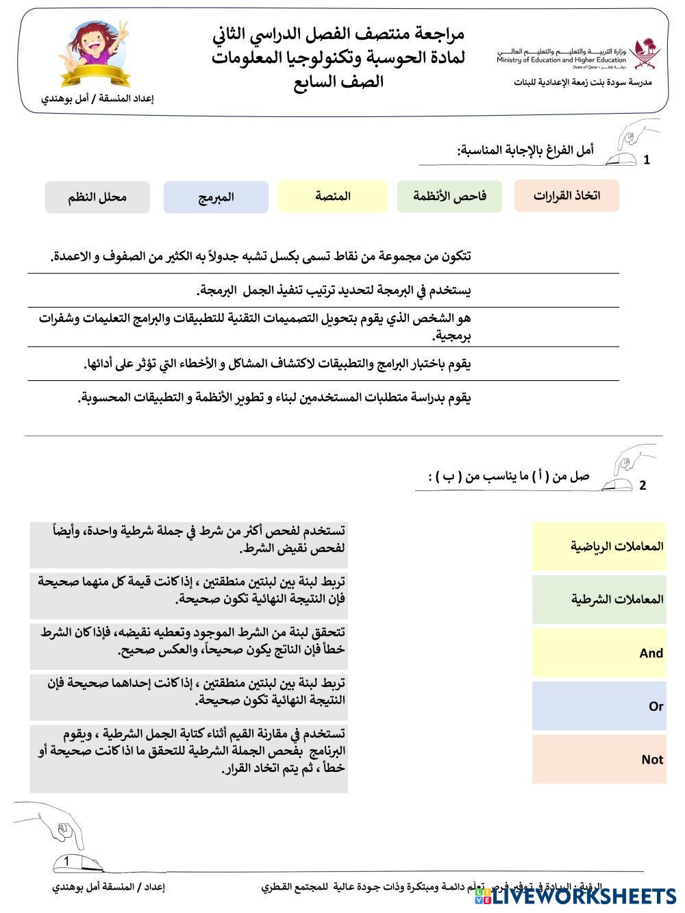Created byamal buhindi Ict quition Age 13-16 level: 7 Arabic Author's Instructions My Google Classroom Courses × 0 classes selected (0 students total) Quick Access Select all classes (0 classes) All Classes Loading courses... Cancel Share Share to selected Course __COURSE_NAME__ __STUDENT_NAME__ (__STUDENT_EMAIL__) مراجع منتصف الفصل الثاني للصف السابع Download Worksheet Validation Check my answers Emails my answers to my teacher Full name Group/level School subject Teacher's email or key code Close Submit Validating worksheet... (12) Your answers have been sent to your teacher. Good luck! OK We encountered an error submitting your answers. Please try again. OK Advertisement | Go Ad Free Created byamal buhindi Ict quition Age 13-16 level: 7 Arabic Author's Instructions