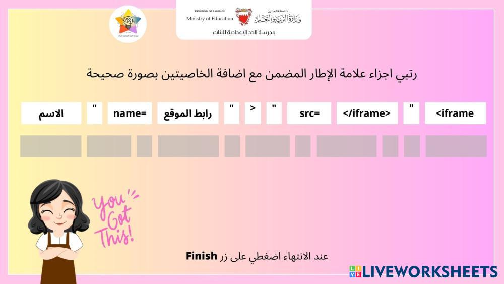 Created by AmalAljunaid Ict ICT Age 12-15 level: grade 7 Arabic Author's Instructions My Google Classroom Courses × 0 classes selected (0 students total) Quick Access Select all classes (0 classes) All Classes Loading courses... Cancel Share Share to selected Course __COURSE_NAME__ __STUDENT_NAME__ (__STUDENT_EMAIL__) iframe Download Worksheet Validation Check my answers Emails my answers to my teacher Full name Group/level School subject Teacher's email or key code Close Submit Validating worksheet... (12) Your answers have been sent to your teacher. Good luck! OK We encountered an error submitting your answers. Please try again. OK Advertisement | Go Ad Free Created by AmalAljunaid Ict ICT Age 12-15 level: grade 7 Arabic Author's Instructions