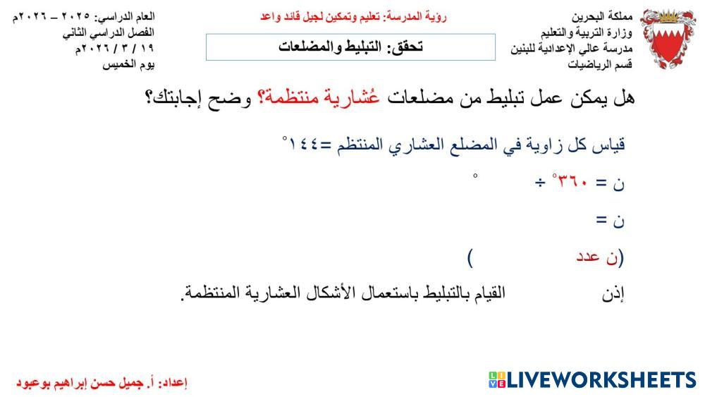 Created byJameel Math Middle School 7th grade Algebra Arabic Author's Instructions تحقق التبليط My Google Classroom Courses × 0 classes selected (0 students total) Quick Access Select all classes (0 classes) All Classes Loading courses... Cancel Share Share to selected Course __COURSE_NAME__ __STUDENT_NAME__ (__STUDENT_EMAIL__) تحقق التبليط Download Worksheet Validation Check my answers Emails my answers to my teacher Full name Group/level School subject Teacher's email or key code Close Submit Validating worksheet... (12) Your answers have been sent to your teacher. Good luck! OK We encountered an error submitting your answers. Please try again. OK Advertisement | Go Ad Free Created byJameel Math Middle School 7th grade Algebra Arabic Author's Instructions تحقق التبليط Explore Worksheets דף עבודה - משוואות בנעלם אחד - כיתה ז Math 7th grade דף עבודה - משוואות בנעלם אחד - כיתה ז Algebra - Math קראו היטב את ההנחיות וענו בהתאם. בהצלחה! Sumas y Restas con Números Positivos y Negativos Math 7th grade Sumas y Restas con Números Positivos y Negativos Algebra - Math Desarrolle las siguientes sumas y restas y coloque la respuesta en el espacio correspondiente. E-LKPD Faktor Bilangan Bulat Math 7th grade E-LKPD Faktor Bilangan Bulat Algebra - Math Kerjakan E-LKPD bersama dengan teman kelompokmu! Jawablah soal cerita berikut dengan menggunakan kelipatan atau faktor. E-LKPD Faktor Bilangan Bulat Math 7th grade E-LKPD Faktor Bilangan Bulat Algebra - Math Jawablah soal cerita berikut dengan menggunakan kelipatan atau faktor.