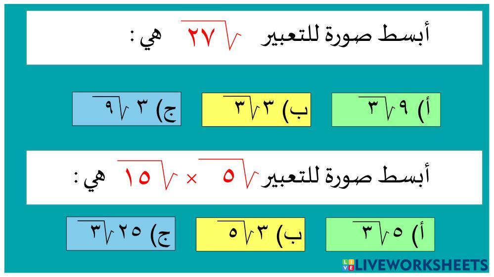 Created by maryyyyam Math High School 9th grade Algebra Arabic Author's Instructions عزيزتي الطالبة إليك نشاط تقييم هدف حصة اليوم My Google Classroom Courses × 0 classes selected (0 students total) Quick Access Select all classes (0 classes) All Classes Loading courses... Cancel Share Share to selected Course __COURSE_NAME__ __STUDENT_NAME__ (__STUDENT_EMAIL__) تبسيط التعابير الجذرية Download Worksheet Validation Check my answers Emails my answers to my teacher Full name Group/level School subject Teacher's email or key code Close Submit Validating worksheet... (12) Your answers have been sent to your teacher. Good luck! OK We encountered an error submitting your answers. Please try again. OK Advertisement | Go Ad Free Created by maryyyyam Math High School 9th grade Algebra Arabic Author's Instructions عزيزتي الطالبة إليك نشاط تقييم هدف حصة اليوم Explore Worksheets LUYỆN TẬP Bài 2 Math 9th grade LUYỆN TẬP Bài 2 Algebra - Math Phiếu này dùng để củng cố - định lương kiến thức đã lĩnh hooik của HS sau bài học Выведение формул преобразования суммы тригонометрических функций в произведение Math 9th grade Выведение формул преобразования суммы тригонометрических функций в произведение Algebra - Math выполните задание рабочего листа Выведение формул преобразования суммы тригонометрических функций в произведение Math 9th grade Выведение формул преобразования суммы тригонометрических функций в произведение Algebra - Math выполните задание рабочего листа 12.1 WS Math 9th grade 12.1 WS Algebra - Math -
