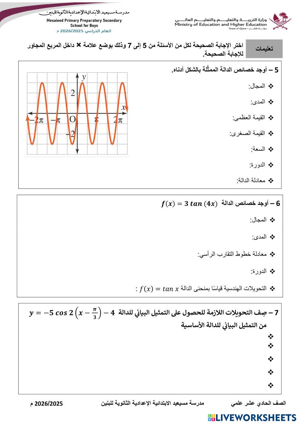 Created byMohamed Ahmed Shehab Math High School 11th grade Algebra Arabic Author's Instructions أجب عن الأسئلة التالية My Google Classroom Courses × 0 classes selected (0 students total) Quick Access Select all classes (0 classes) All Classes Loading courses... Cancel Share Share to selected Course __COURSE_NAME__ __STUDENT_NAME__ (__STUDENT_EMAIL__) التمثيل البياني وإزاحة للدوال الدائرية Download Worksheet Validation Check my answers Emails my answers to my teacher Full name Group/level School subject Teacher's email or key code Close Submit Validating worksheet... (12) Your answers have been sent to your teacher. Good luck! OK We encountered an error submitting your answers. Please try again. OK Advertisement | Go Ad Free Created byMohamed Ahmed Shehab Math High School 11th grade Algebra Arabic Author's Instructions أجب عن الأسئلة التالية Explore Worksheets LKPD kelas 8 Math 11th grade LKPD kelas 8 Algebra - Math kerjakan Формулы логарифмов Math 11th grade Формулы логарифмов Algebra - Math Заполнить таблицу буквами правильных ответов Знаки тригонометрических функций Math 11th grade Знаки тригонометрических функций Algebra - Math Заполнить пропуски в рабочем листе Формулы сложения Math 11th grade Формулы сложения Algebra - Math Правильный ответ отметьте галочкой