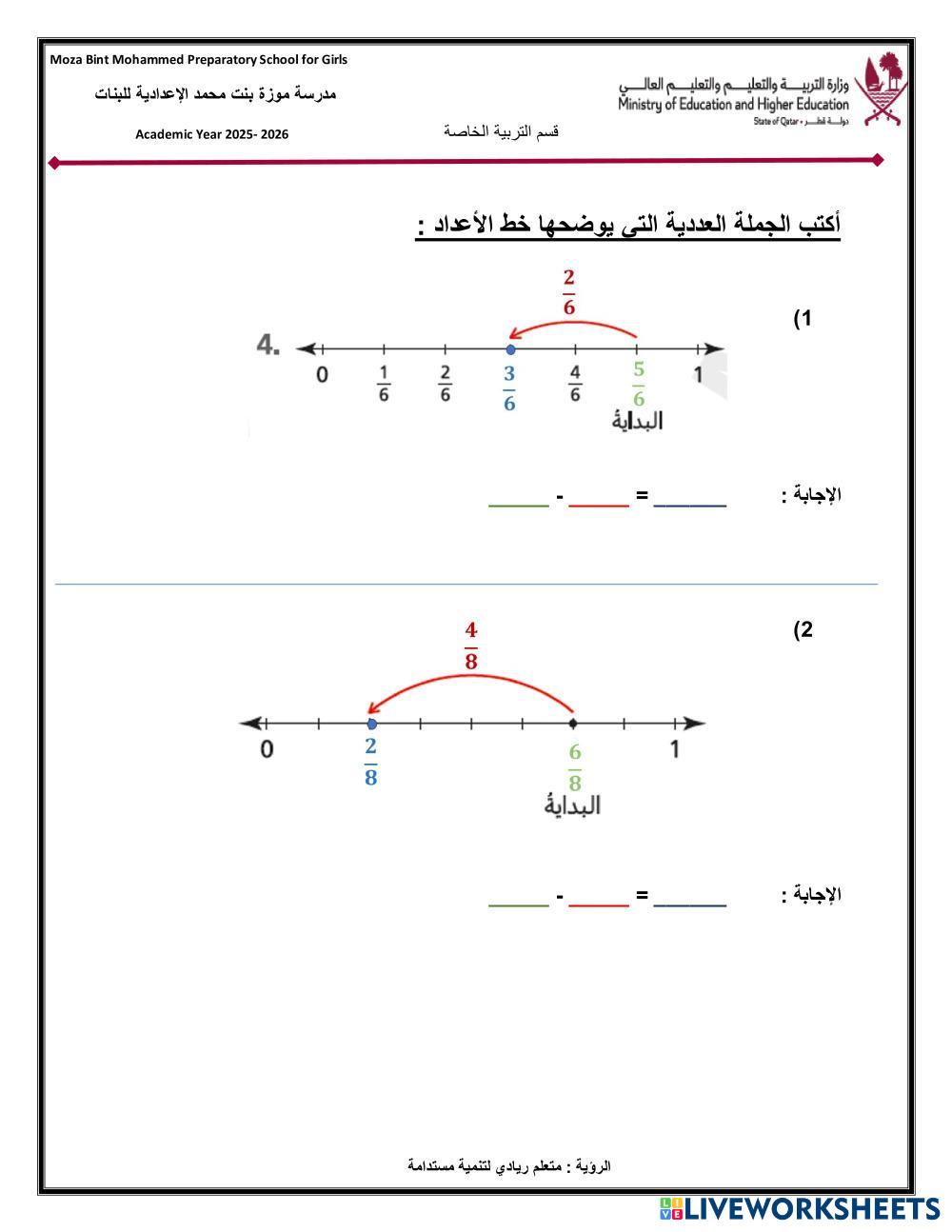 تكتب جملة طرح بالعد التنازلي على خط الأعداد