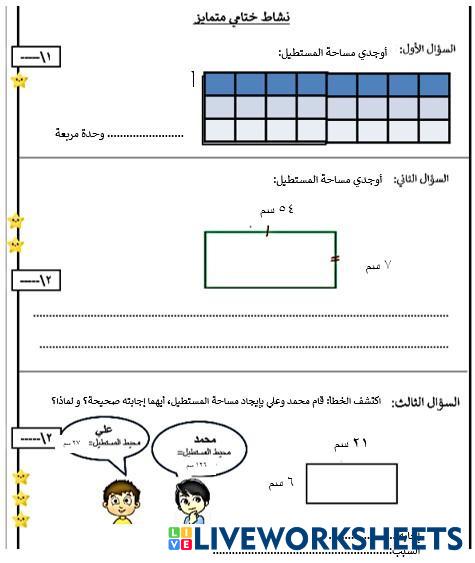 Created by sarahmohammed2 Math Elementary 5th grade Measurement Arabic Author's Instructions اقرا السؤال جيدا ثم اجب My Google Classroom Courses × 0 classes selected (0 students total) Quick Access Select all classes (0 classes) All Classes Loading courses... Cancel Share Share to selected Course __COURSE_NAME__ __STUDENT_NAME__ (__STUDENT_EMAIL__) نشاط ختامي متمايز Download Worksheet Validation Check my answers Emails my answers to my teacher Full name Group/level School subject Teacher's email or key code Close Submit Validating worksheet... (12) Your answers have been sent to your teacher. Good luck! OK We encountered an error submitting your answers. Please try again. OK Advertisement | Go Ad Free Created by sarahmohammed2 Math Elementary 5th grade Measurement Arabic Author's Instructions اقرا السؤال جيدا ثم اجب Explore Worksheets وحدات قياس الكتلة Math 5th grade وحدات قياس الكتلة Measurement - Math . وحدات قياس السعة Math 5th grade وحدات قياس السعة Measurement - Math . Problemas unidades de medida Math 5th grade Problemas unidades de medida Measurement - Math 5ºP Problemas de unidades de masa, longitud y capacidad Unidades de longitud Math 5th grade Unidades de longitud Measurement - Math Sistema métrico. Unidades de longitud