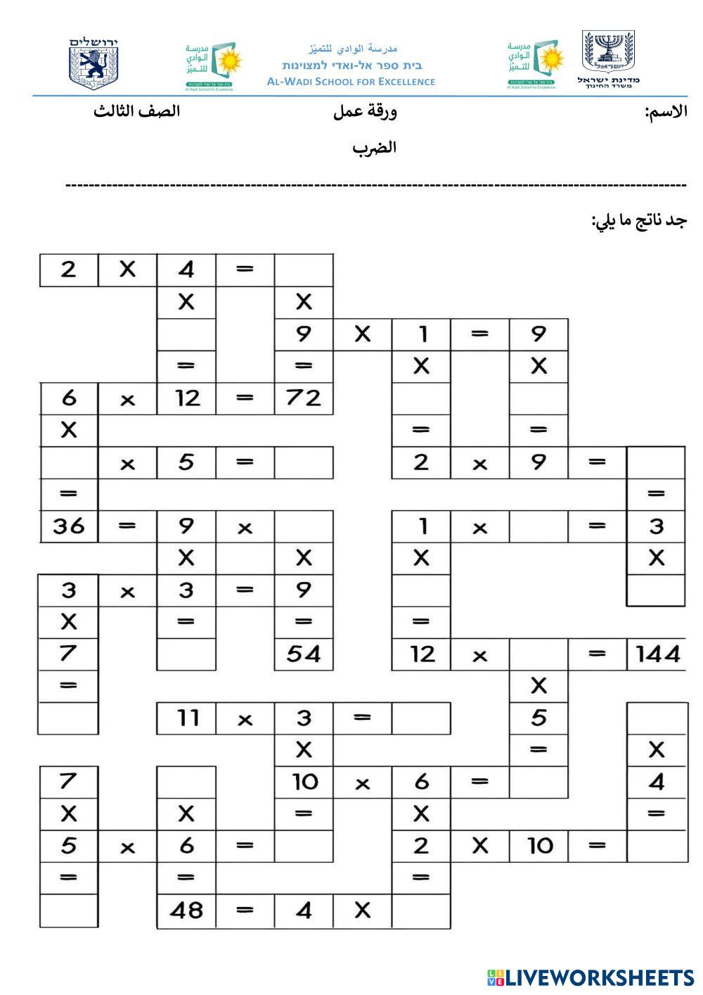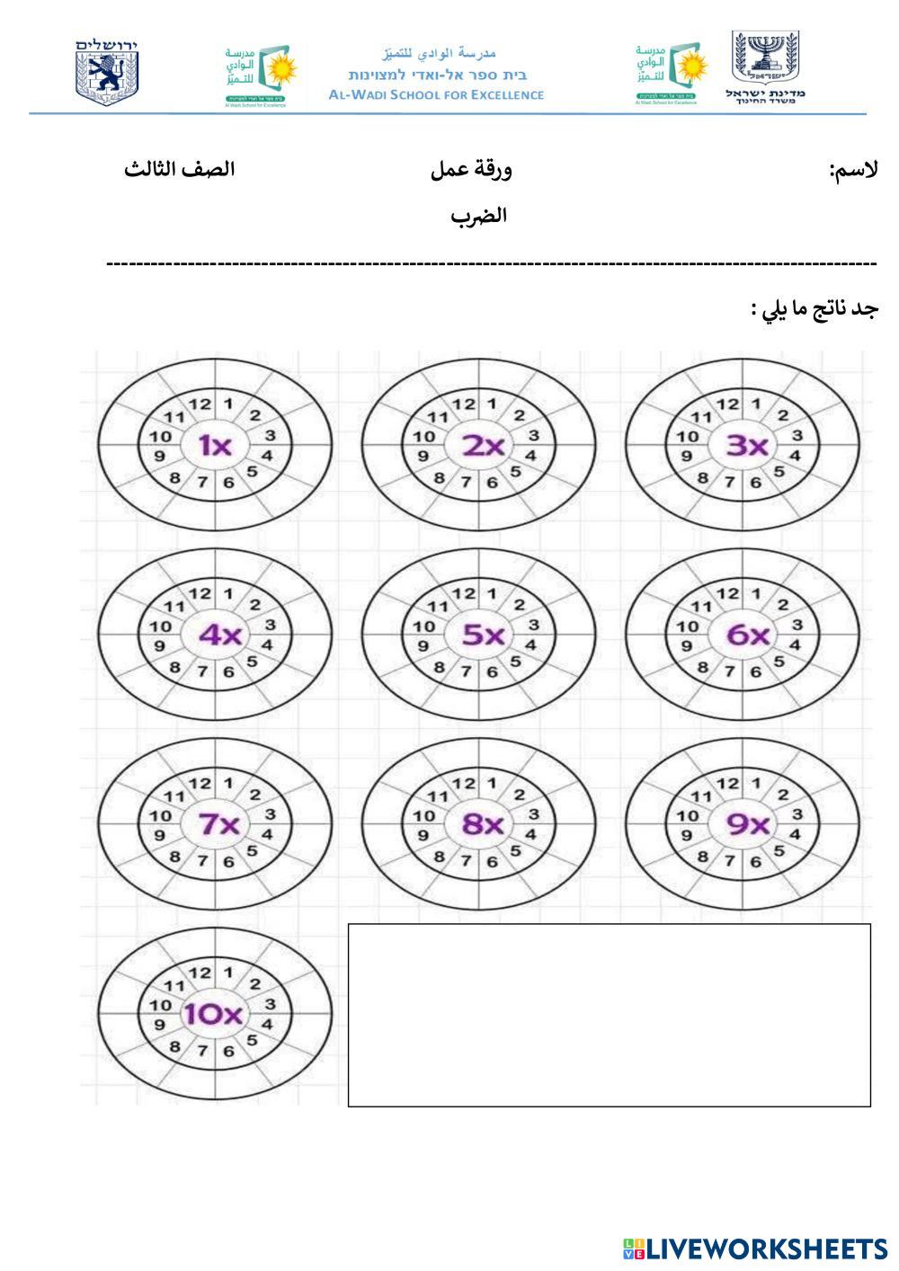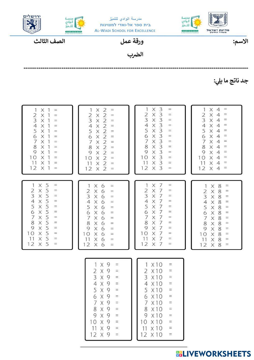 Created by 13164 Math Elementary 3rd grade Multiplication and Division Arabic Author's Instructions نجد حل المسائل التالية: My Google Classroom Courses × 0 classes selected (0 students total) Quick Access Select all classes (0 classes) All Classes Loading courses... Cancel Share Share to selected Course __COURSE_NAME__ __STUDENT_NAME__ (__STUDENT_EMAIL__) جدول الضرب Download Worksheet Validation Check my answers Emails my answers to my teacher Full name Group/level School subject Teacher's email or key code Close Submit Validating worksheet... (12) Your answers have been sent to your teacher. Good luck! OK We encountered an error submitting your answers. Please try again. OK Advertisement | Go Ad Free Created by 13164 Math Elementary 3rd grade Multiplication and Division Arabic Author's Instructions نجد حل المسائل التالية: Explore Worksheets Tähe arvväärtus Math 3rd grade Tähe arvväärtus Multiplication and Division - Math iseseisev töö: leia tähe arvväärtus (25 punkti) MULTIPLICACIONES Math 3rd grade MULTIPLICACIONES Multiplication and Division - Math Ficha para trabajar la multiplicación Multiplication Tables (2, 3, 4) Math 3rd grade Multiplication Tables (2, 3, 4) Multiplication and Division - Math Times tables Tìm chỗ rửa xe cho ô tô Math 3rd grade Tìm chỗ rửa xe cho ô tô Multiplication and Division - Math nối