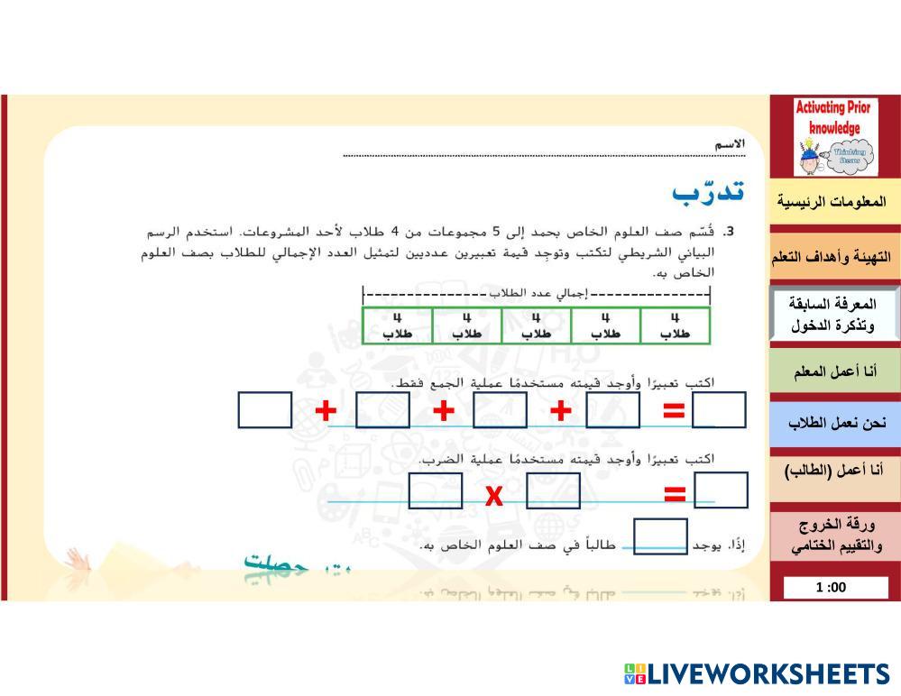 قومي بحل المسائل مع كتابة اسمك في أعلى الصفجة