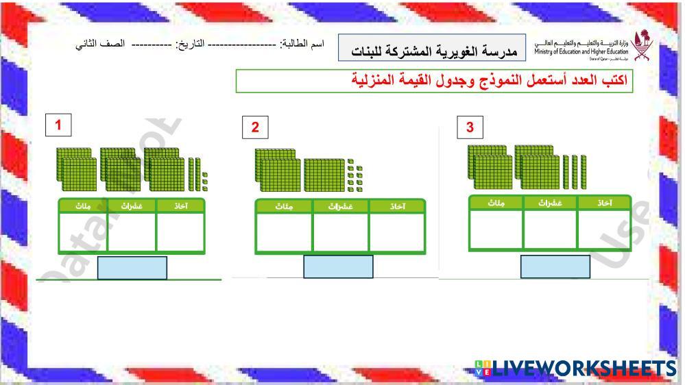 Indicador de evaluación: que el alumno reconozca el valor posicional de los números.
