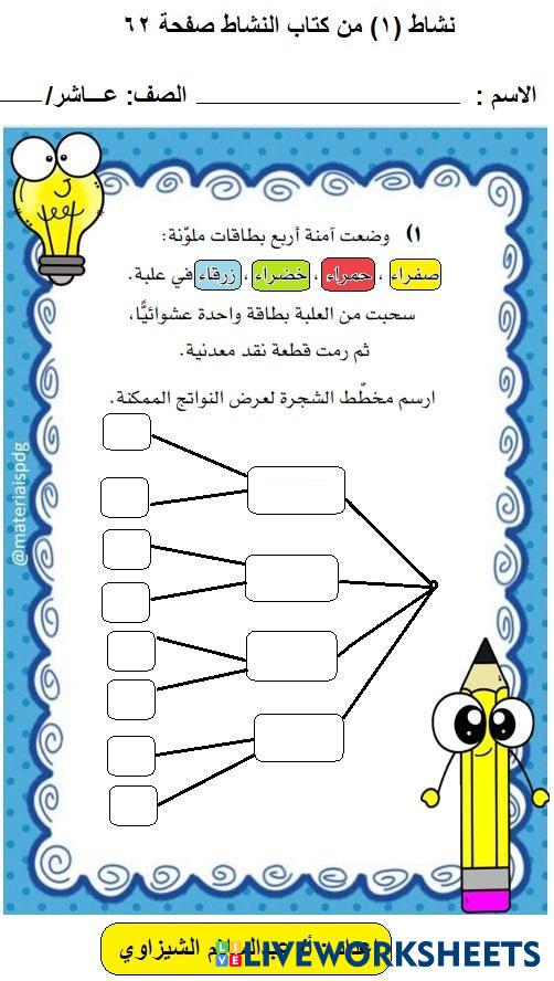 نشاط (1) على درس 12 - 1 للصف العاشر ف2